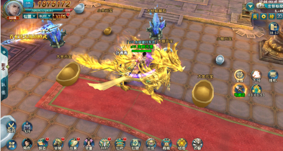 觉得游戏和元宝输出低?这里有个金银秘库等你来,完成主线任务58级,即可参加金银秘库,每日的14:00,22:30开启,每场20分钟,20分钟的时间内地图上的金银和元宝随处可见,只要点击采集即可收入禳中,还有比捡钱更爽的事情吗!!!