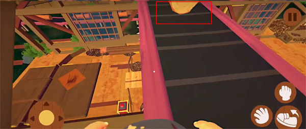 2、跑到履带的最上方,将木头推下去,砸中下方箱子上的按钮;