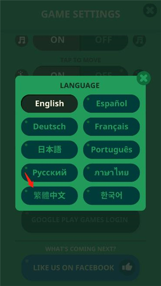点击English按钮,进入语言界面,根据点击繁体中文即可
