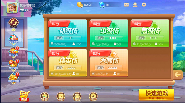 新手福利也挺多的,登录就有奖励,破产补助什么的,完全不用担心输光所有的欢乐豆。操作也很简单,一键进场就能快速开局,匹配到等级相近的对手,游戏体验非常流畅。