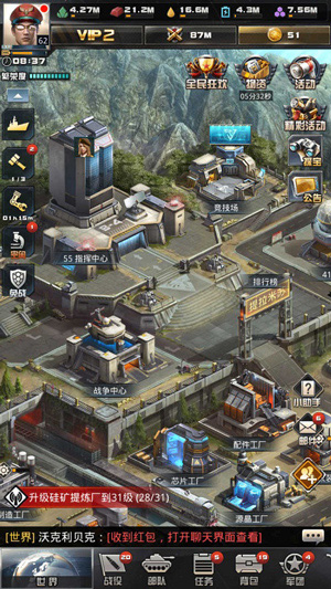 第五、军官:前期重点培养命、攻、暴、三将、因为这都是导弹兵种要用到的,如果在中后期升不了统帅,那么升军官就是身为平民的你不二选择,所以城市战必须会玩,赚功绩是第一位的!