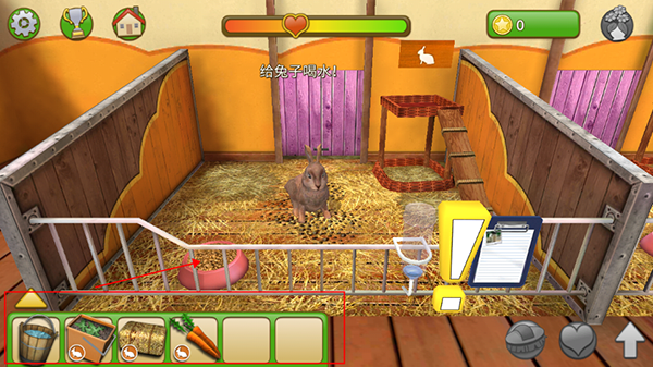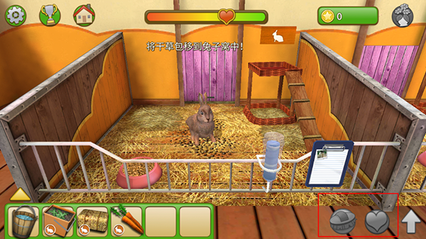 3、点击剪切板,用放大镜来检查兔子,当指标都为绿色,宠物会感到幸福美满。