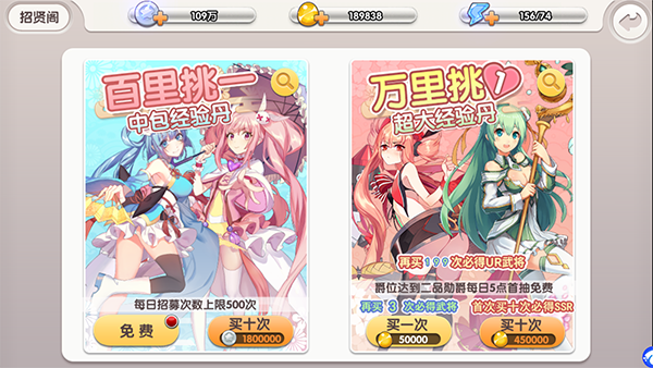 一般老司机都会选择对招贤阁sayno,所以萌新们,萌战最有保证的就是第一次十连,必出SSR,所以说,第一次之后的每一次十连除非你有百分之百的信心一般是劝你不要轻易尝试!前期元宝来的快损耗也大啊!