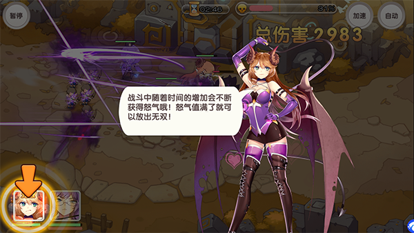 4、战斗中随着时间的增加会不断获得怒气值,怒气值满了就可以释放“无双”,也就是大招;