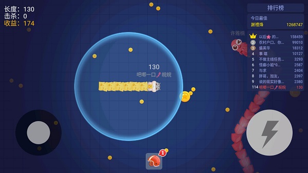 从局内操作层面上,贪吃蛇进化论一方面,玩家可通过摇杆控制贪吃蛇走位,吃到的金币越多,体型越大、长度越长;另一方面,右侧加速键则可让贪吃蛇获得短暂的移动加速效果。