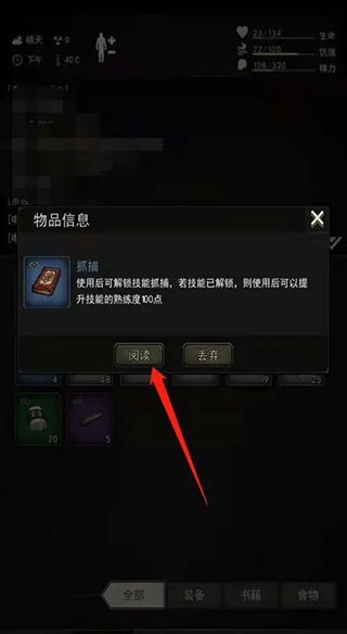 3、然后,打开背包,学习并装备抓捕技能;