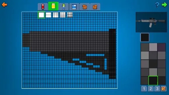 首先,既然是纯手动,要选择一个2D白模进入后,不要急着开始画,先规划好大概位置,防止空间不足导致缩水,或者枪械像素过低不美观