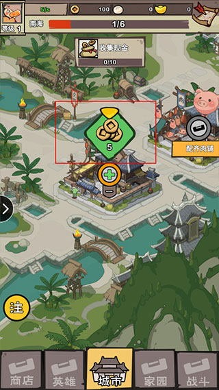 2、虽然吧,我们的口号是“以德服人”,但赚钱对于我们来说也十分重要,所以点击玄德鞋业上的浮动气泡,收集铜币吧!