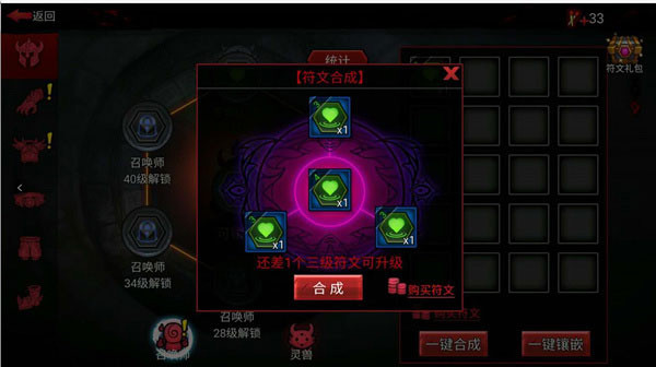 《火柴人联盟2》符文系统是灵活多变的,前期资源不够的时候可以先上点低等级符文带着,千万别把符文槽空着,这样很亏,后面慢慢符文多了后就可以取下来合成更高级的,三个同样等级同属性的符文可以免费合成更高一级的符文,合成不需要手续费且百分百成功率!