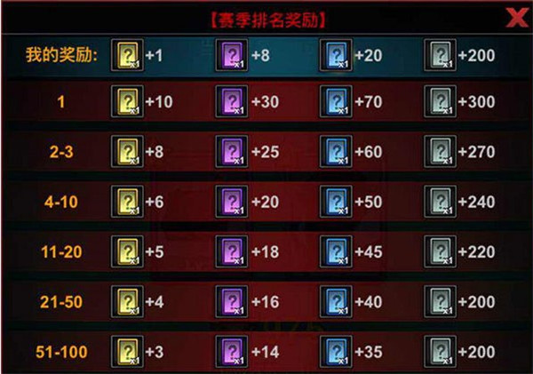 玩家通过每天限制的对战次数对战,胜者加杯,败者减杯,每周为一个赛季、每赛季结束都会得到排名奖励。