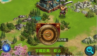 2、看上图指针指示的方向是向右并且宝藏距离极远,故我们可以拉动地图一直向右走,走出一段距离后可以继续点击罗盘判断藏宝地点。