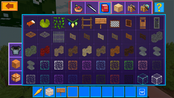 5、在创造模式中,背包里所有的物品全部都是免费的,你可以随机选择一项材料,创造你的世界;