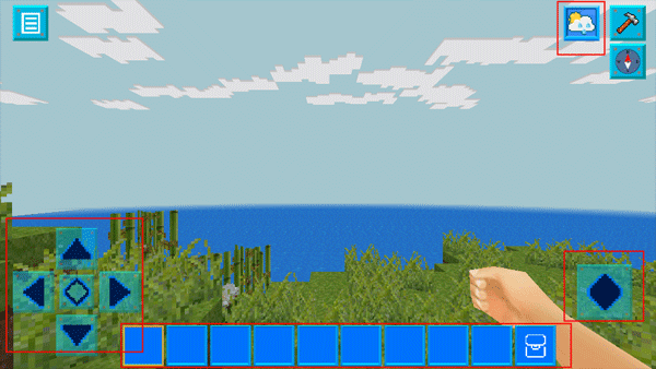 2、这里我们选择创造模式,游戏中的左右两边按钮显示的是移动方向键和跳跃键;