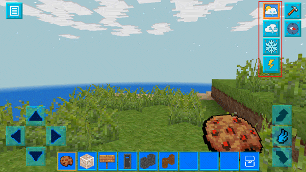 3、当我们点击右上方的天气图标时,可以调整这个世界的气象,如闪电、雪花、下雨等,给你一种逼近于现实的体验;