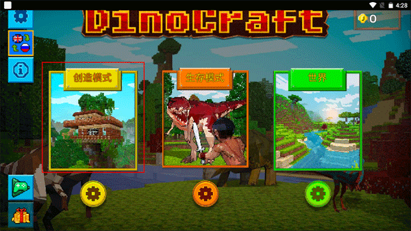 1、下载进入方舟方块世界手机版,你会看到创造模式、生存模式以及世界三种玩法,每一种玩法都乐趣十足;