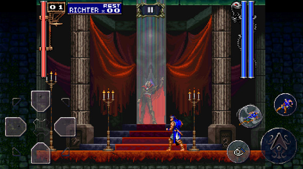 恶魔城月下夜想曲是根据同名动作冒险游戏移植而来的一款闯关动作手游,该作是恶魔城系列公认最完美的一作,玩家将继续扮演里希特前往恶魔城猎杀吸血鬼之王,并且本作还支持玩家亲自操控吸血鬼伯爵阿鲁卡多去斩杀他的父亲德古拉,阿鲁卡多能够召唤各种使魔配合自己的技能碾压BOSS,即使是手残党也能轻松享受战斗探索的乐趣。现在科乐美将其移植到移动平台,保留了原汁原味的内容,增加了便于手机操作的方向键、释放技能按钮,让玩家们再一次体验当年探索恶魔城的魅力,游戏中精良的战斗系统、合理的迷宫探索设计、充满魅力的黑暗幻想美术设计,优美的音效等等特色内容直到现在都能够让人感到眼前一亮,并且游玩过程充满了乐趣,不管你有没有接触过恶魔城系列,本作都是入门、重温的绝佳作品!