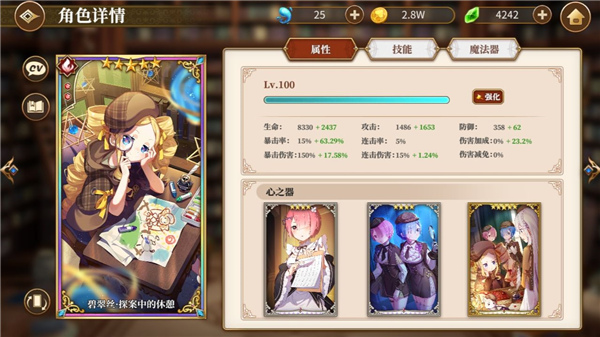 心器:怒气,暴击,爆伤,面板(盛放,侦探,红茶)