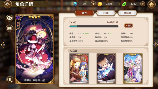 心器:暴击率,怒气,攻击。基本上带我上面那套就够用,最后一个可以考虑换归途