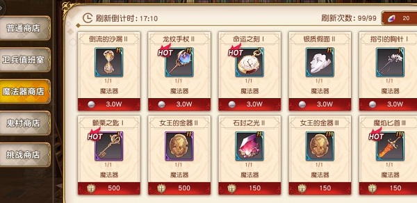 前期商店我觉得最重要的是买突破素材和一些品质好的魔法器,其他的可以不买,毕竟金币也挺紧缺的。