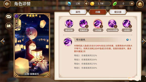 人物评价:非常非常强力的辅助型人物,普a和ap建议升满,最最重要的是这个人物可以不需要大招等级,所以一个即可,但是需要满爆击,所以前期并不好用。