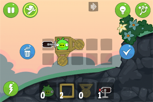 捣蛋猪2太空版是捣蛋猪系列的新作品,英文名称Bad Piggies 2,游戏以绿色的捣蛋猪为主角,游戏在玩法上,并不是采用工作室以往的玩法,而是将猪砸向对手或建筑,场景也不再固定,玩家通过移动绿猪来收集道具,完成关卡任务。另外,游戏为玩家提供了各式各样稀奇古怪的道具,如弹簧、气球、螺旋桨、雨伞等物品,玩家要利用手上的道具去制造一辆载具。同时,在游戏中,事情总有意外发生!你能创建终极飞行器,并引导他们安全到达目的地吗?那些狡猾的猪猪有几个工具可供使用,但都需要你的帮助把这些交通工具变得更完善!游戏的关卡非常多,每一关都可以让玩家体验到不同的乐趣感兴趣的小伙伴赶快来当快下载,和猪猪们一起闯关吧。