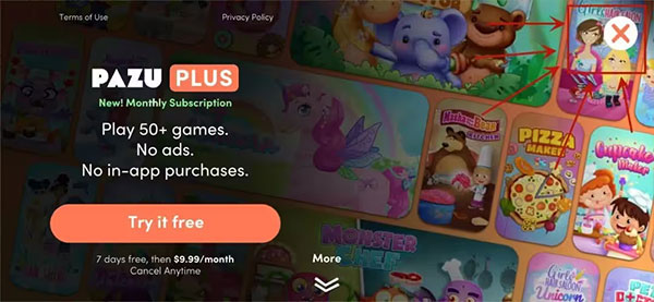 第三步:出现一个游戏官方内置的广告,点击右上方的【X】把它关掉