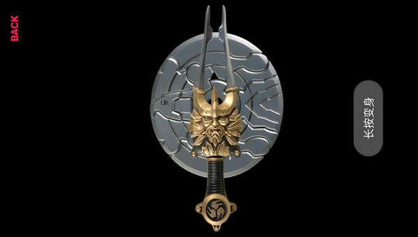 1、进入假面骑士响鬼的驱动器变身模拟器,长按右侧的变身鬼叉试试吧!
