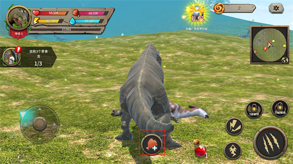 2、玩家可以通过左下角的摇杆来控制恐龙的移动;