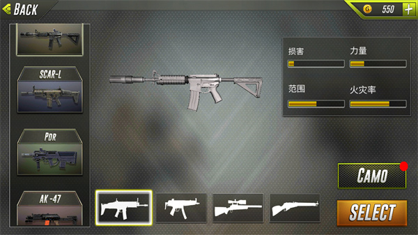 3、根据需求选择枪械,点击SELECT进入游戏游玩。