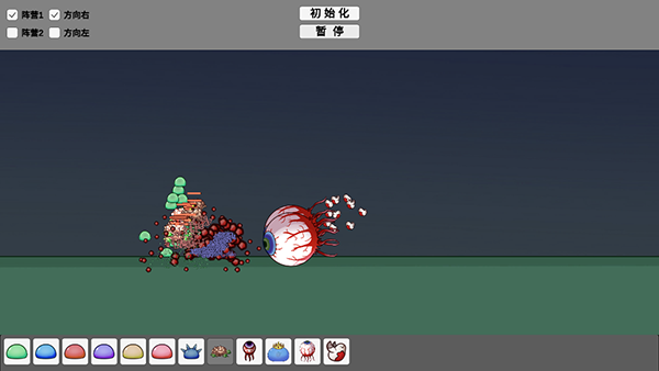 怪物竞技场是一款由宅宅萝卜b站up主为广大玩家打造的策略竞技游戏,玩家将利用好不同种类的怪物来一场怪物之间的恐怖大战。里面拥有史莱姆、乌龟、大眼、史莱姆之王、鸟等怪物,后续还会更新全新的怪物内容,让你体验到真正的怪兽大战。并且能了解到最终的战斗,能让哪个怪物活到最后!另外,怪物竞技场的玩法非常简单,只需要安排两边阵营怪物的位置和方向,然后点击开始便能来一场旷世怪物大战了!喜欢该题材的小伙伴一定要下载试试!