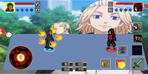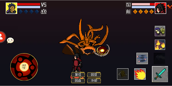 这款游戏挺有意思的,尤其是对于喜欢《火影忍者》动漫的人来说,能够在里面看到熟悉的角色和技能,感觉特别亲切。游戏玩起来也挺简单的,左边控制移动,右边释放技能,操作流畅,不会有太多复杂的地方。特别是那些功能按钮,比如复位、回血什么的,设计得很贴心,玩得时间长了也不用担心技能冷却太久或者豆豆不够用。