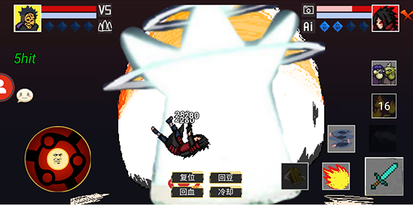像素火影超神版手游是以动漫“火影忍者”为题材制作的一款像素格斗游戏,里面拥有超多角色可以选择以及多种游戏模式,包括强者挑战、无尽试炼、演练、对战练习等模式。在对战选择忍者阶段的同时,还可以选择合适的秘券和通灵羁绊,所有的角色技能招式都是百分百还原的,给玩家最好的体验。游戏操作与其它传统手游类似,左侧轮盘控制角色移动,右侧释放技能但是游戏界面正下方还加入了四大功能按钮,分别是:复位(将所有设置全部恢复到默认配置)、回血(恢复所有角色的生命值)、回豆(回满角色技能大招所需的豆豆)、 冷却(恢复所有技能的冷却时间),加大了游戏的可玩性,还有超多成就等你来解锁,体验更加丰富的游戏内容。
