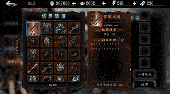 通过这个系统可以提升罪业装备的属性当罪业装备达到60级之后,便可以吞噬其他任意(非传说)橙色装备,来缓慢提升原始罪业装备的主属性。同时,若是吞噬相同部位的装备,还有几率将被吞噬装备的词缀吸收到原始装备上,使罪业装备有机会获得橙色词缀。