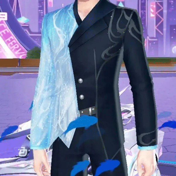 女生银白色长发,一袭金色长裙高贵非凡,周身散发的金色光芒看起来耀眼夺目;男生似海中王子登场,自带水花特效,金色与黑色拼接西装相互衬托,典雅不失风度。