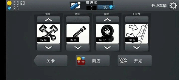 悬挂:建议点满(特殊图或者特殊刷分方式除外)这个不用多说,防止你跑的特别快动能特别大的时候空中落地,角度稍微不对砸向地面车就会疯狂旋转