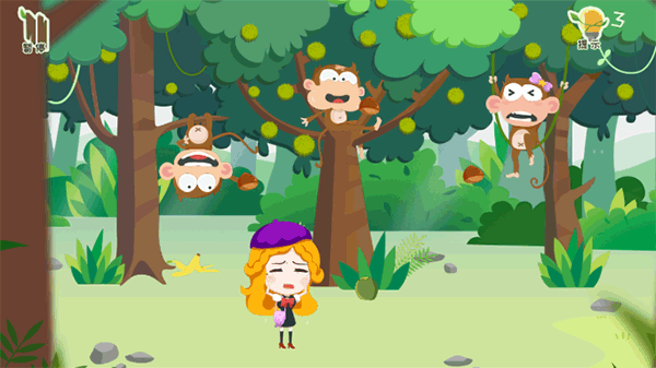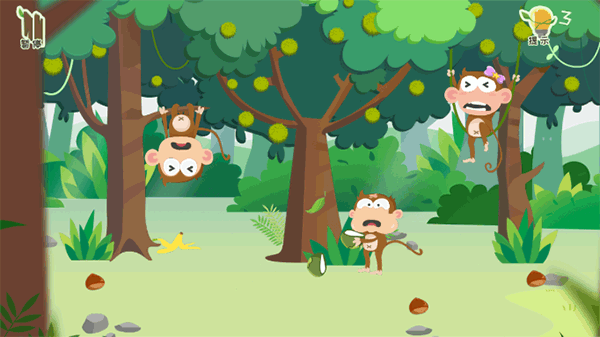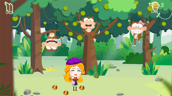 2、猴子们拿到了板栗之后会帮这个女生把坚硬的板栗砸开,就通关了。
