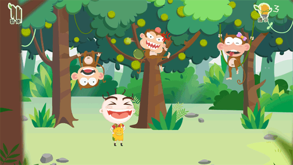 2、史小坑拿到了板栗之后就会用板栗扔猴子,之后猴子生气用板栗砸他,这个时候就会获得很多板栗。