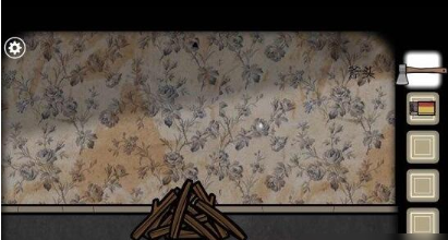 3、用斧头把木头砍成块,然后把木头放在壁炉下在用火柴点燃,会看到壁炉上面的一把药匙。