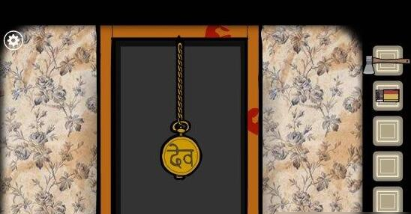 5、根据提示打开左边的柜子,会发现怀表,发送里面的时针数字是8,分针是5.