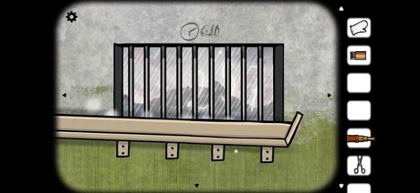 下一个场景里,有一台神秘的机器,观察开关,好像可以往里面投入某些物品。在铁窗旁边得到一个时间“6:10”,应该可以利用这个时间打开钟表。