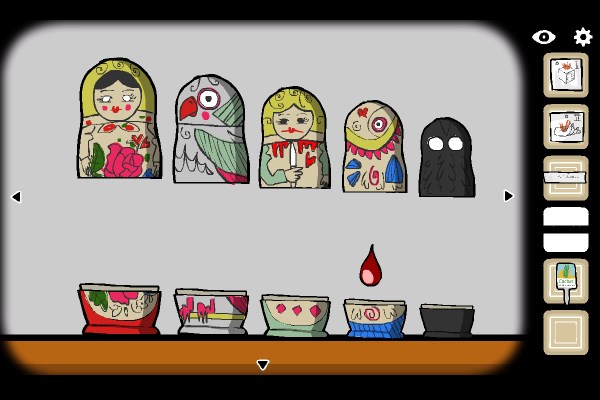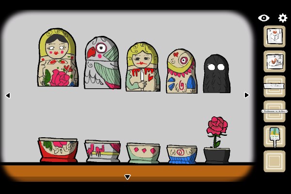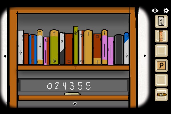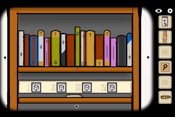 6、把书架下的套娃打开后,将物品按每个套娃身上的图案一一放入。最后拿到钥匙。