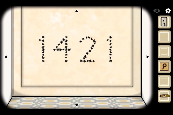22、通话结束后转一个方向看到女尸,点击它后从嘴里飞出飞蛾。转向天花板看到飞蛾组成的数字1421