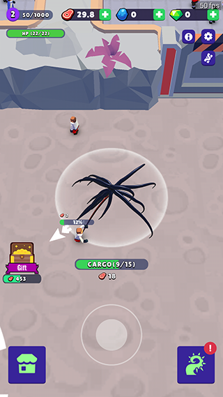 3、背包装满后,可以把敌人运送到飞船,换取食物。
