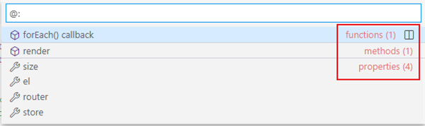 “@” 跳转到symbol(搜索当前页面的标签、变量、属性、类名、函数等),也可以 Ctrl+Shift+O 直接进入