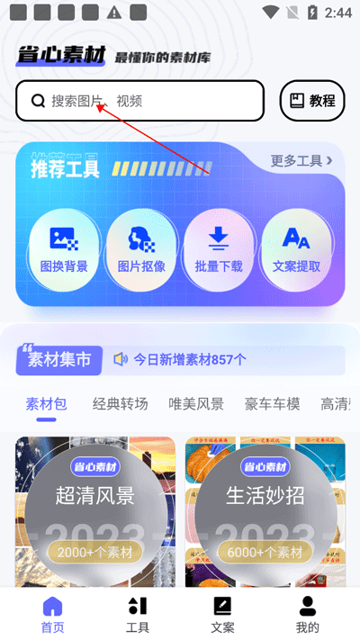 省心素材是一款可以给用户提供多样素材选择的手机创造工具,涵盖了全网最新素材并做了详细的分类,方便随时在线查找,各种风格的文案、图片为你提供源源不断的创作灵感,遇到喜欢的文案支持一键下载到相册或直接复制使用,非常的方便。同时为了提高用户的产出效率,省心素材里还有视频提取、文案提取以及图片智能处理等工具,助你自由编辑视频图片,有了这款工具,你不必担心图片难以处理,也不用为灵感枯竭而烦恼!