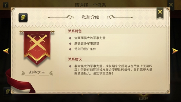 战争之王派系称之为战争派系,战争派系在到达一定派系等级时,能带来的加成效果为全军团的加成,所以说不管是远程单位还是近战单位,战争派系都是丝毫不虚色其他派系的,战争派系解锁的建筑是工业类建筑以及武器类军事建筑,虽然具有全面而强大的军事力量,但战争派系的提升条件相较于其他派系比较苛刻,所以在前期相对弱势。