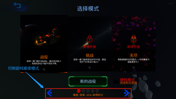 2、可以选择不同的游戏模式,以及游戏难度,进行切换,点击“新的战役”开始
