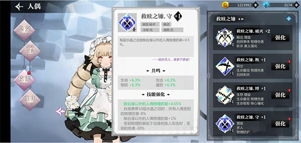 2、星级强化:星级越高,人偶属性的成长值和战力越高,对应的人偶天赋解锁也就越高。