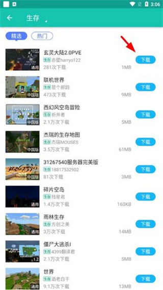 2、然后选择自己喜欢的地图类型,例如生存类地图;