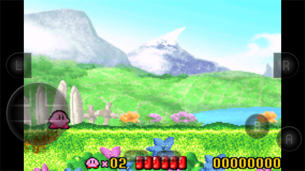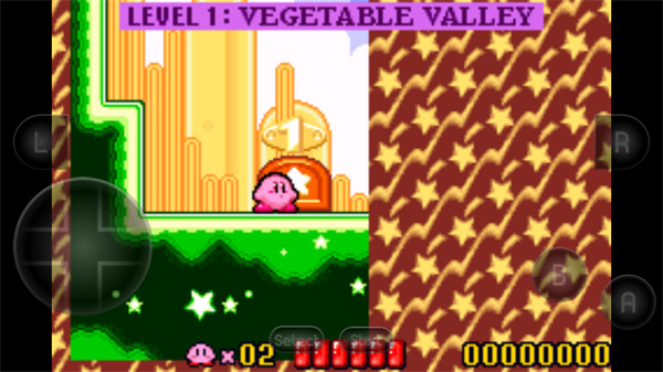 A键为跳,再按一下就会含一口气在肚子里,可以飞起来。从高处(2/3个屏幕高)掉下来,就会大头朝下落,这样也是有攻击力的。在肚子鼓起来的时候按B键是吐气,有攻击力的,攻击距离较短。在肚子空的时候按B键是吸气,可以吞掉敌人,就算是有墙隔着的地方也可以吸到。如果是吸到有特殊能力的敌人,按一下十字键的下键就可以复制敌人的能力。吸入两个敌人再按下键,就可以用轮盘选择能力,等它自动停下来的话,则随机抽取一个能力;吸入两个敌人后喷出,喷出的星星有穿透效果。如果将能力星星和敌人同时吸入再复制能力,则使用星星的能力。如果蹲着按B键可以做出滑垒的动作。